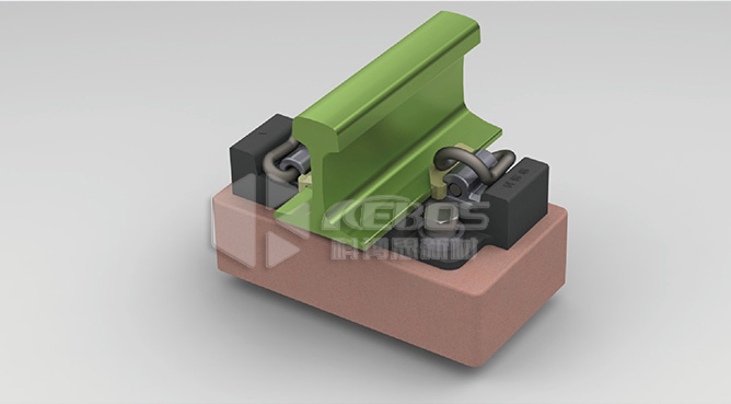 壓縮硫化型減振扣件主要由粘接墊板、調(diào)距齒塊、錨固螺栓等零部件組成,與普通彈性分開式扣件相 比,減振效果可達(5~8) dB。該扣件系統(tǒng)結(jié)構(gòu)緊湊、重量輕、零部件少、安裝維修方便,可用于城市 軌道交通新線鋪設(shè)或既有線改造,也適用于高架線小阻力路段,具有廣泛適應(yīng)性。